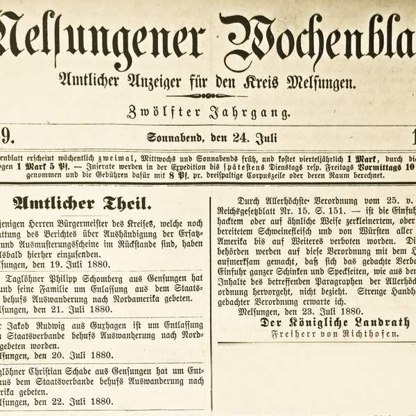 Auch aus Gensungen wanderten in dieser Zeit ca. 260 Bürger/innen als Einzelreisende oder im Familienverband überwiegend nach Nordamerika (USA) aus.